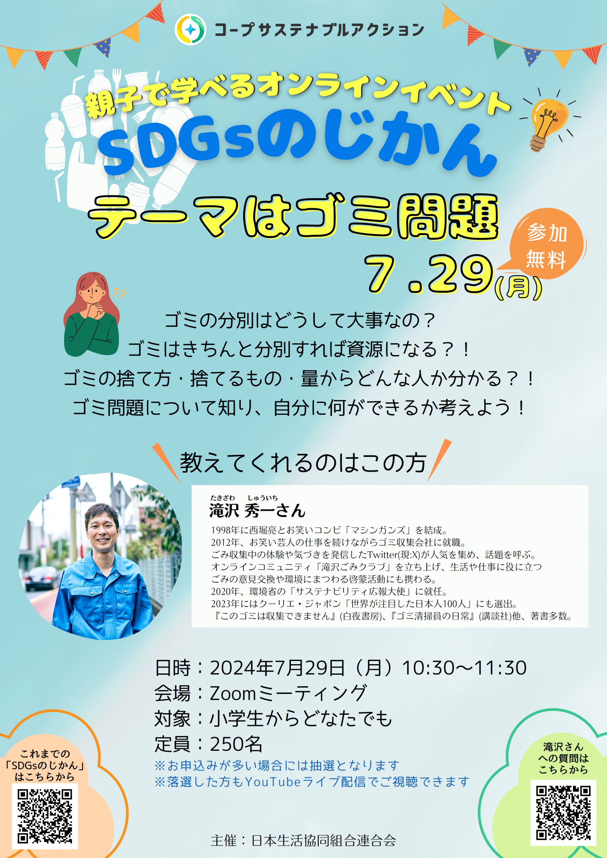 親子で学べるオンラインイベント「SDGsのじかん」が7月29日(月)に開催されます。