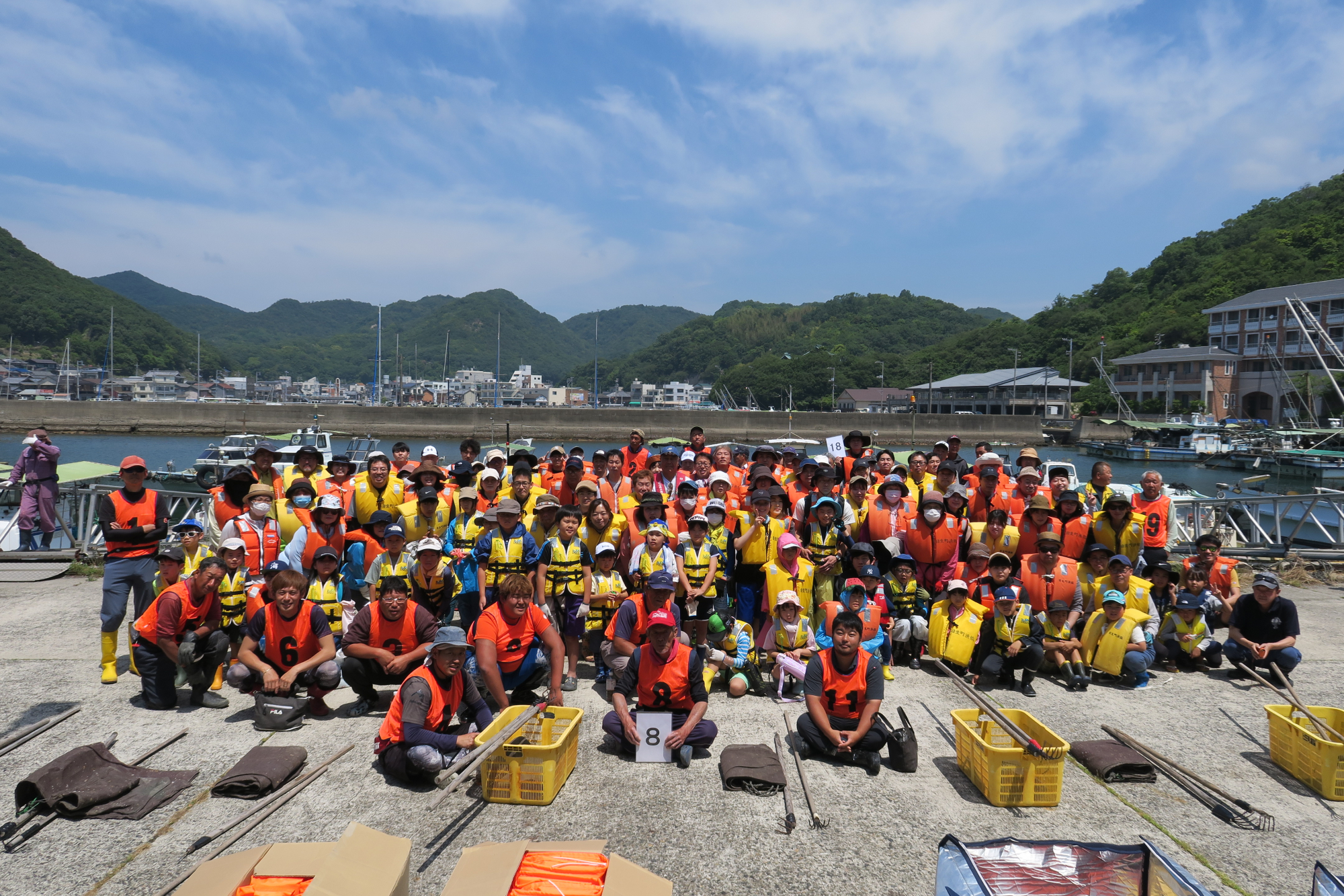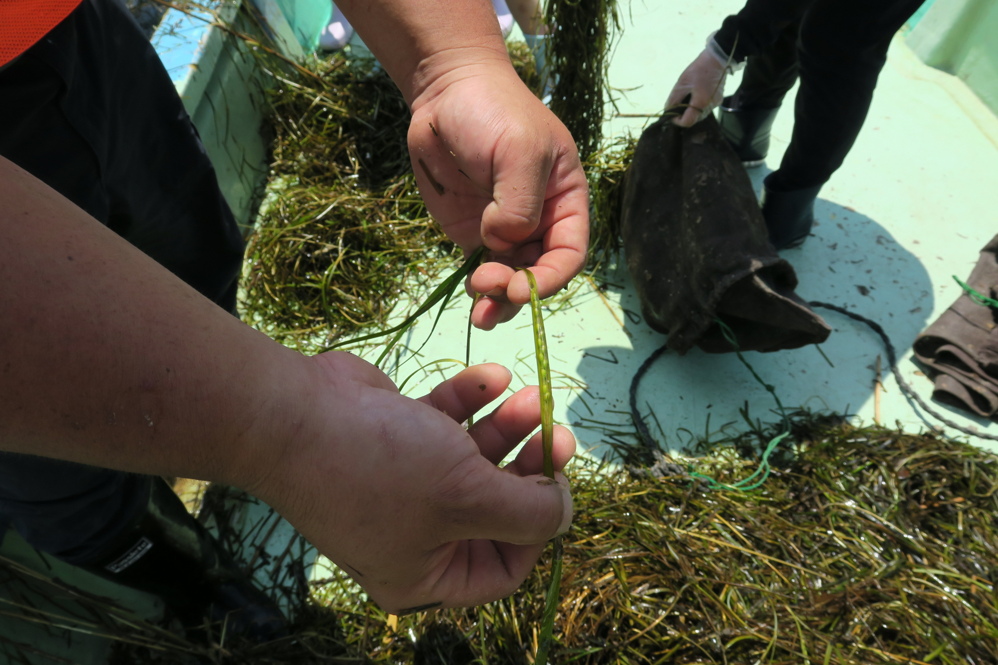 アマモ場再生活動の一環として、6月1日(土)、日生町漁協(備前市日生町)でアマモの種取りが行われました。