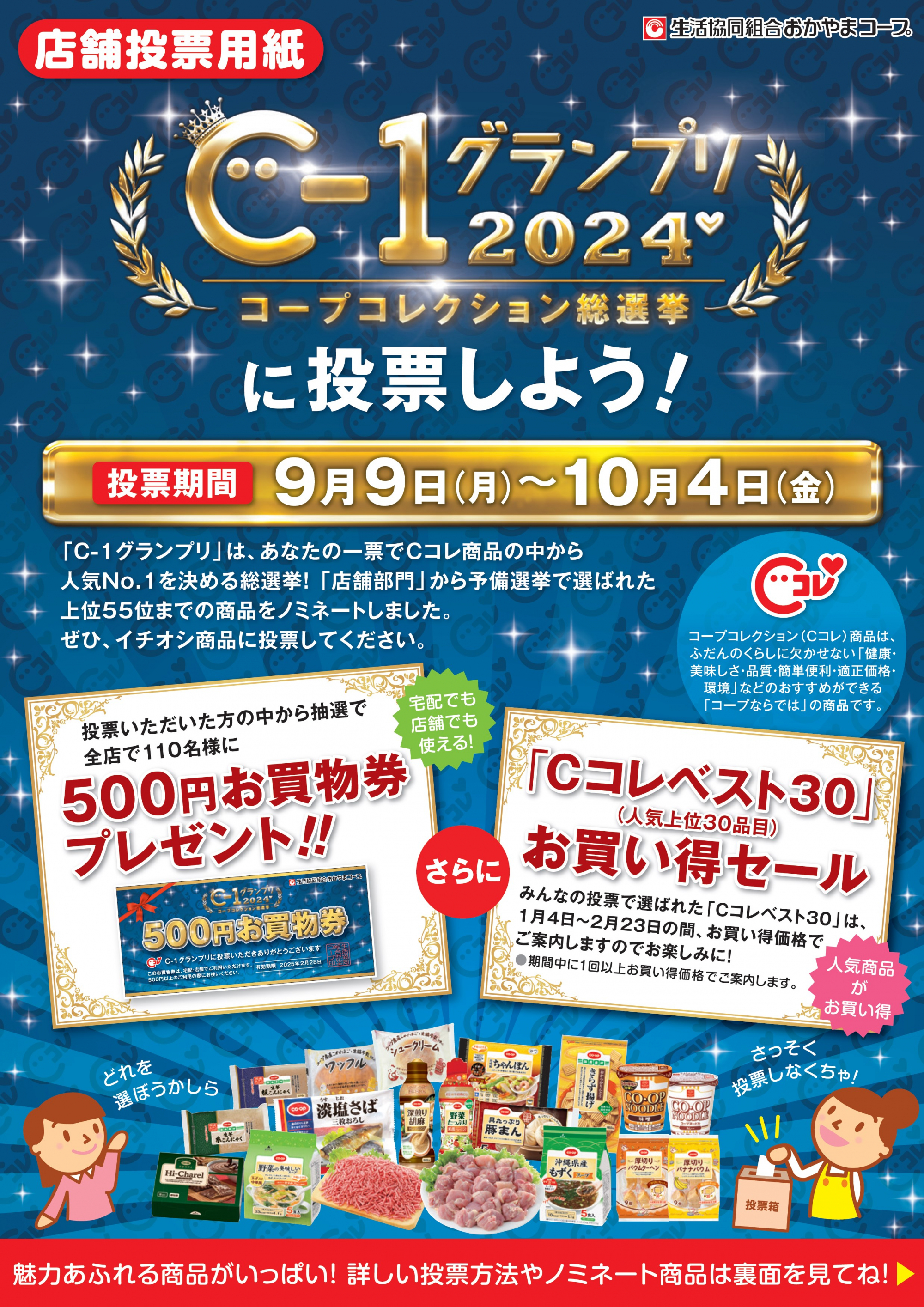「500円お買物券」をプレゼント!★みなさんの投票で選ばれたベスト30商品は、お買得価格でご案内!
