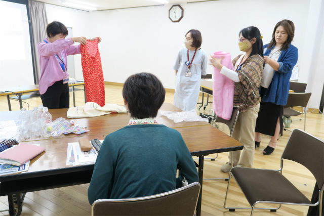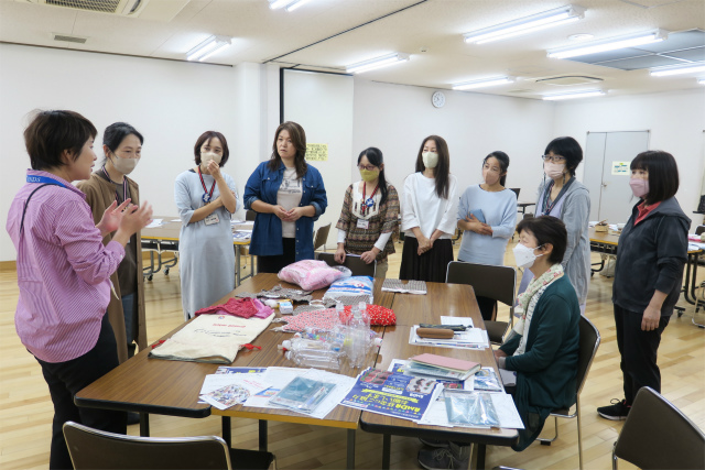 竹久さんが見せてくださったのは、病院で出産したお母さんと赤ちゃんに贈られる「赤ちゃんキット~おかやまコープ~」。おむつ・ベビー服やおくるみ、ベビーオイルやクリーム、そしてお母さんの服や下着などが特製の袋に入っています。このキットが妊婦健診の受診や病院での出産のきっかけになり、リスクを低減するために一役買っているとのことでした。