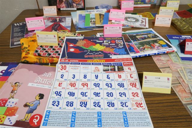 会場では、ネパールの本やおもちゃの展示、チャリティグッズの販売もありました。