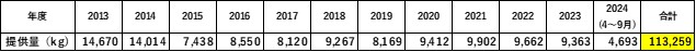 2013年1月にスタートしたこの取り組みは今年で12年目となり、2024年9月末までの総重量は113,259kgに上りました。
