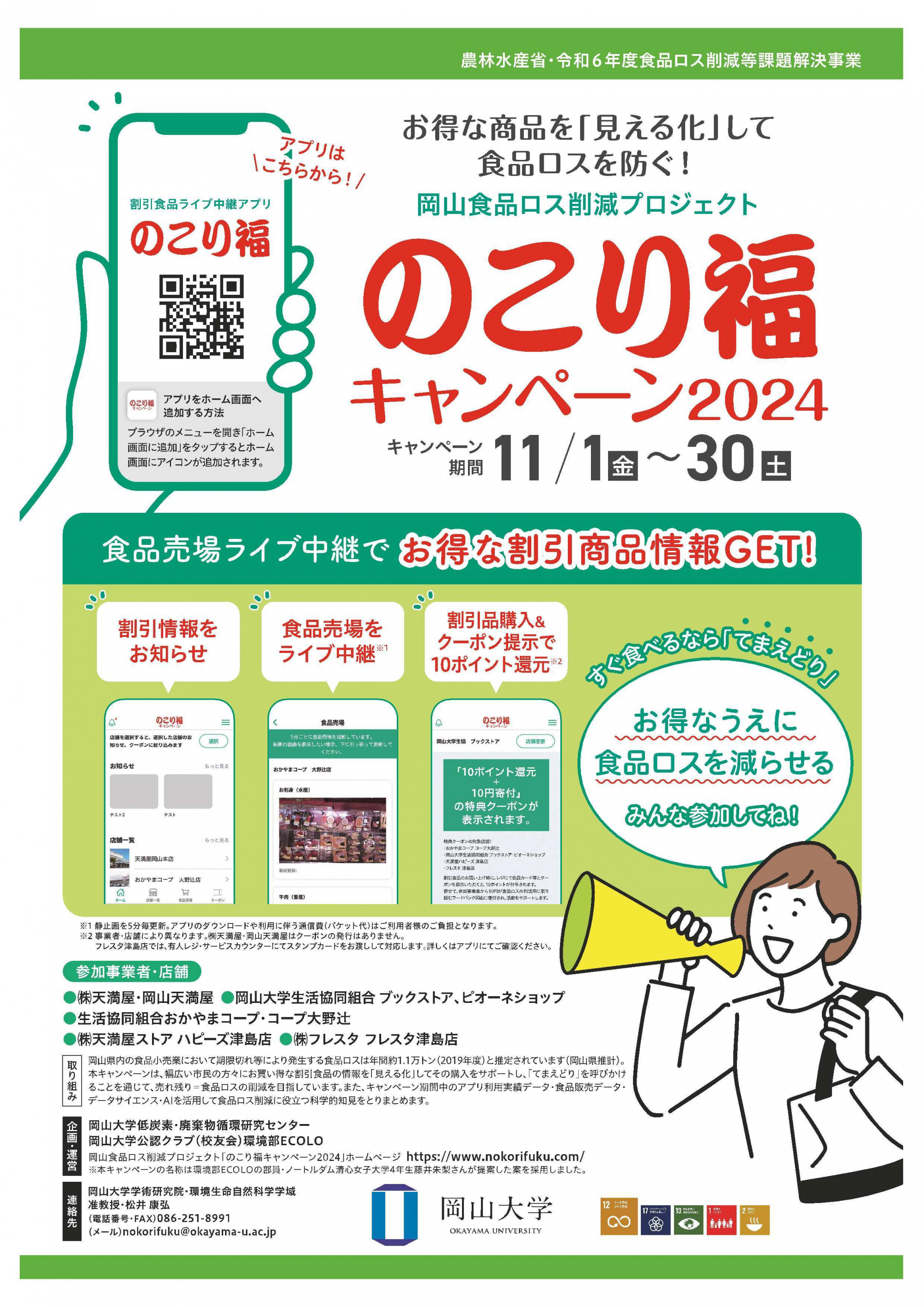 また、「のこり福キャンペーン」アプリで配布するクーポン利用実績1件あたり10円をフードバンク団体に寄付し、その活動を支援します。