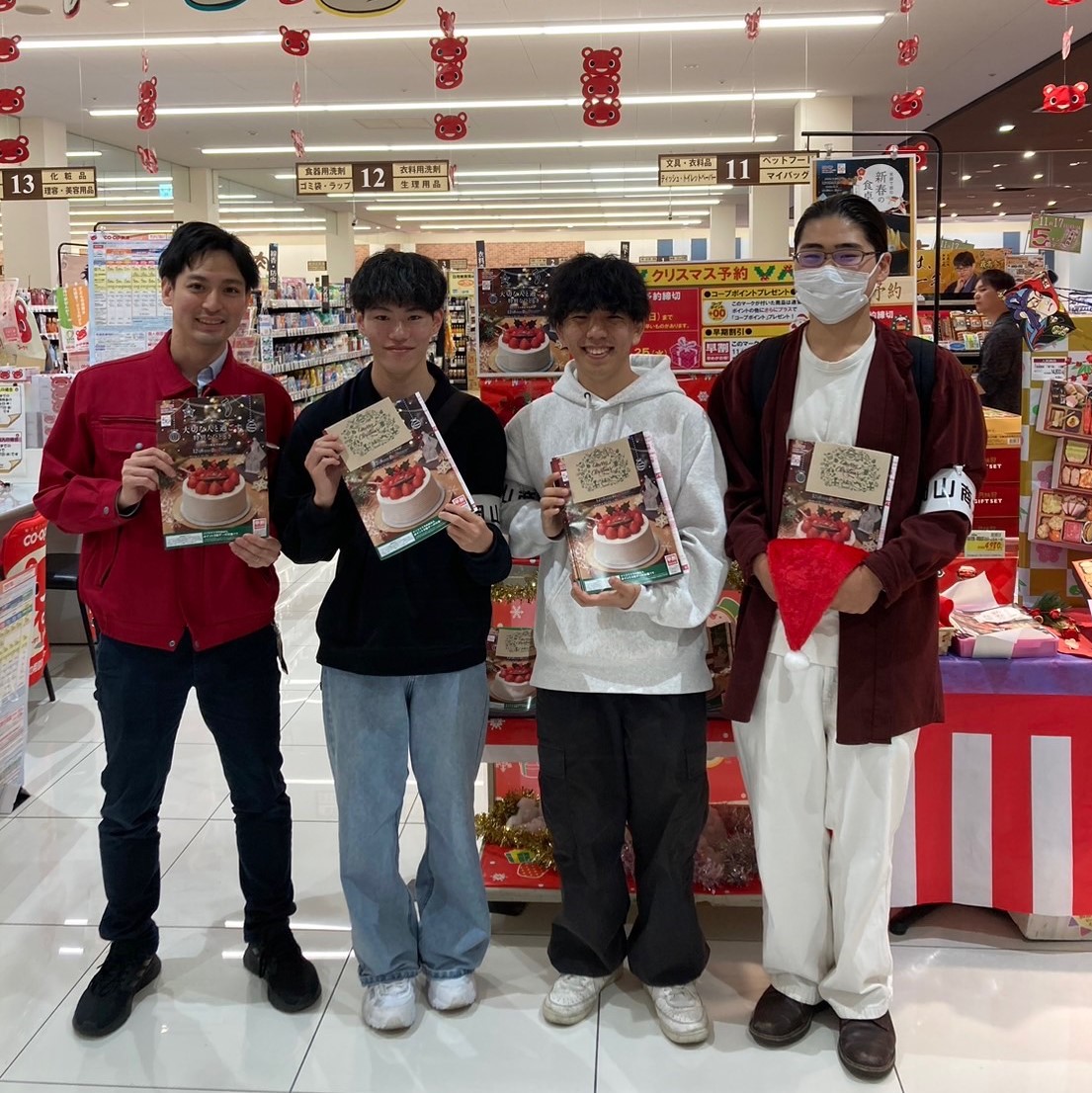 11月初旬から中旬にかけて、各大学・高校の皆さんが、コープのお店でカタログを配布し、来店された組合員さんにケーキをアピールしました。