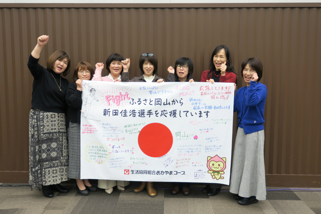 応援旗は、日本生協連を通じて、新田選手に届けられます。