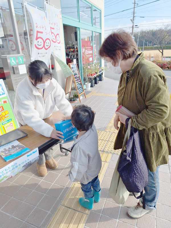 組合員さんやそのご家族が店頭に立ち、それぞれの言葉で募金を呼びかけました。