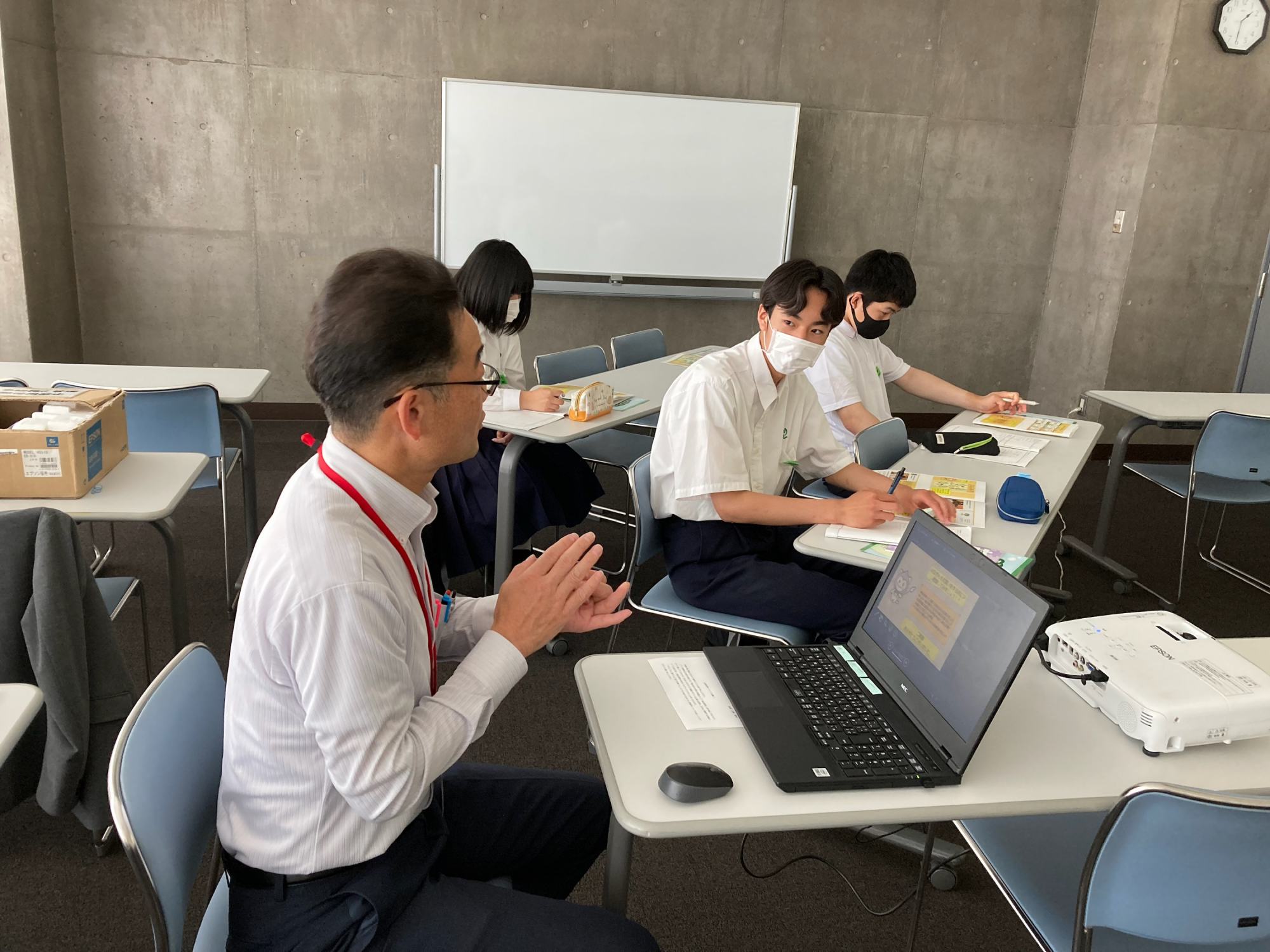 中学生の生徒の皆さんに説明する総合マネジメント事務局の樽岡功さん