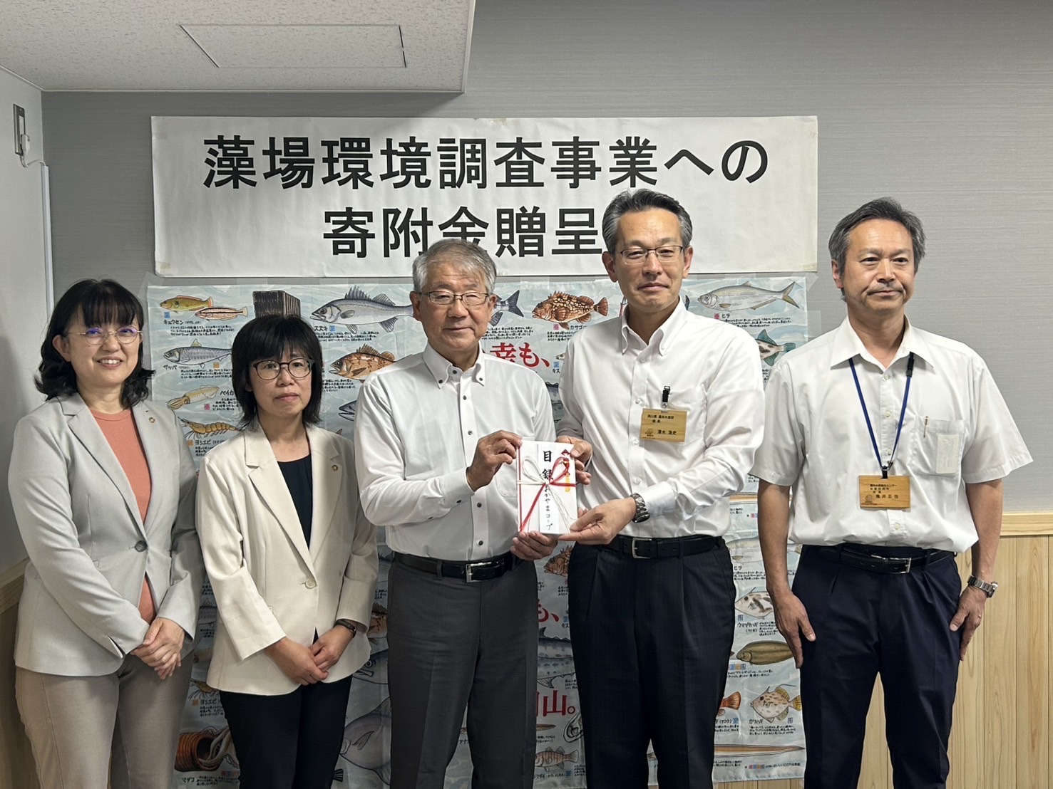 寄付金の贈呈は、平成22年度から継続して行っており、県では寄付金を活用してアマモ場に生息する魚介類の調査を行い、アマモ場再生の効果を把握しています。寄付金の累計額は今回を含め2,842,497円になりました。
