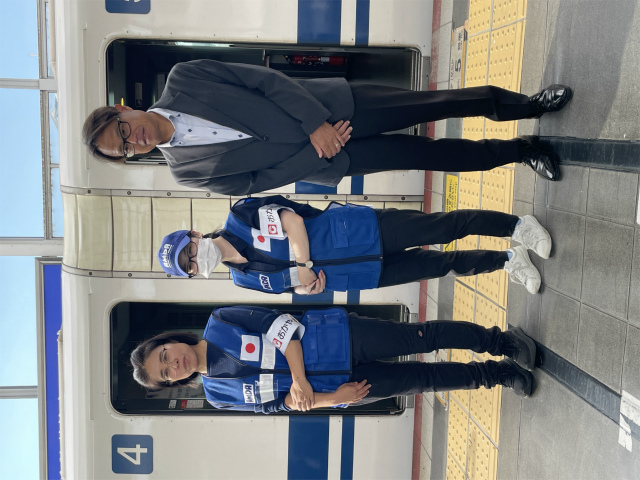 10月12日、AMDA緊急救援ネットワーク 荻野 祥子看護師とAMDA職員の看護師が現地に向けて岡山駅を出発しました。(大山マジョリー調整員は関西国際空港で合流)