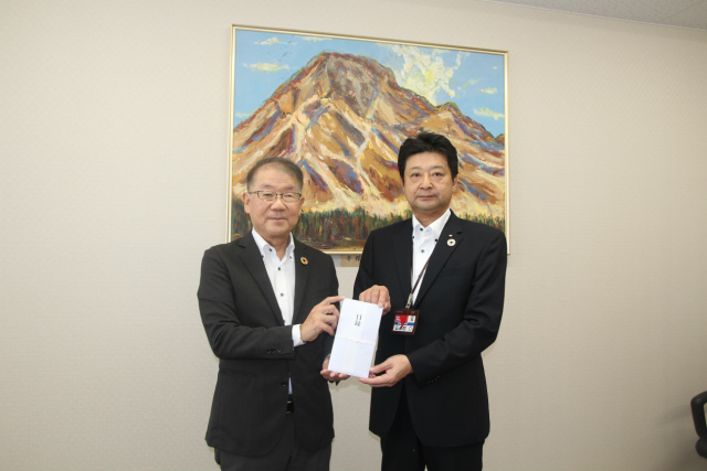 HOME 最新情報・お知らせ 熊本県生協連にお見舞い金10万円を贈呈 最新情報・お知らせ 熊本県生協連にお見舞い金10万円を贈呈 2025/11/04 おかやまコープは、8月に熊本県で発生した記録的な豪雨での甚大な被害に対し、日本生協連の協力への呼びかけに応えて、「災害復興支援・応援積立金」より見舞金10万円を拠出しました。 10月24日、おかやまコープ 田中照周理事長が熊本県生活協同組合連合会を訪問し、熊本県生協連 嶋田誠会長にお見舞い金の目録をお渡ししました。 左から田中理事長、嶋田会長 お知らせ一覧に戻る