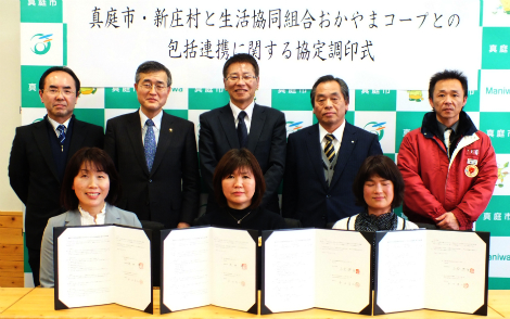 おかやまコープは1月30日、真庭市および新庄村と「包括連携に関する協定」を締結しました。