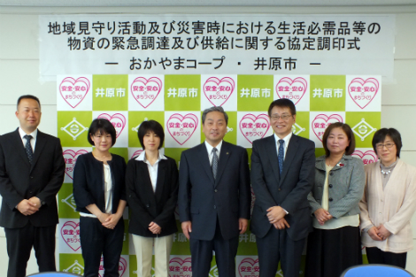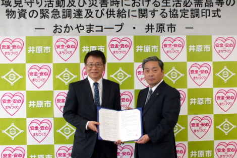 おかやまコ-プは、4月21日(火)、井原市と「地域見守り活動に関する協定」「災害時における生活必需品等の物資の緊急調達及び供給に関する協定」を締結しました。