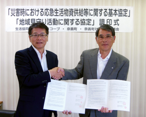 おかやまコープの協力で、安全な奈義町を作っていきたいと考えています。協定の締結、誠にありがとうございます。