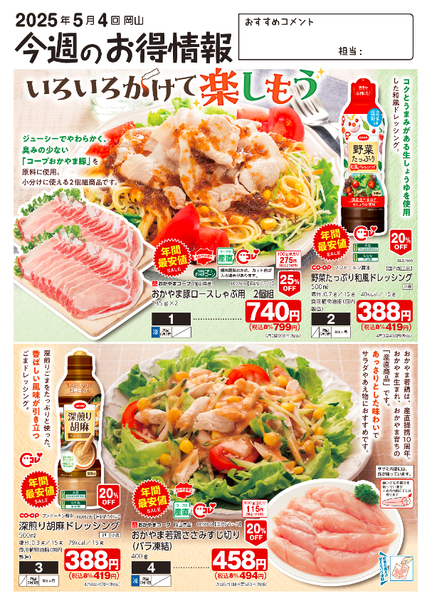 味わい深い赤身に繊細な霜降りのはいった岡山県産黒毛和牛モモ肉をうすぎりにしました。