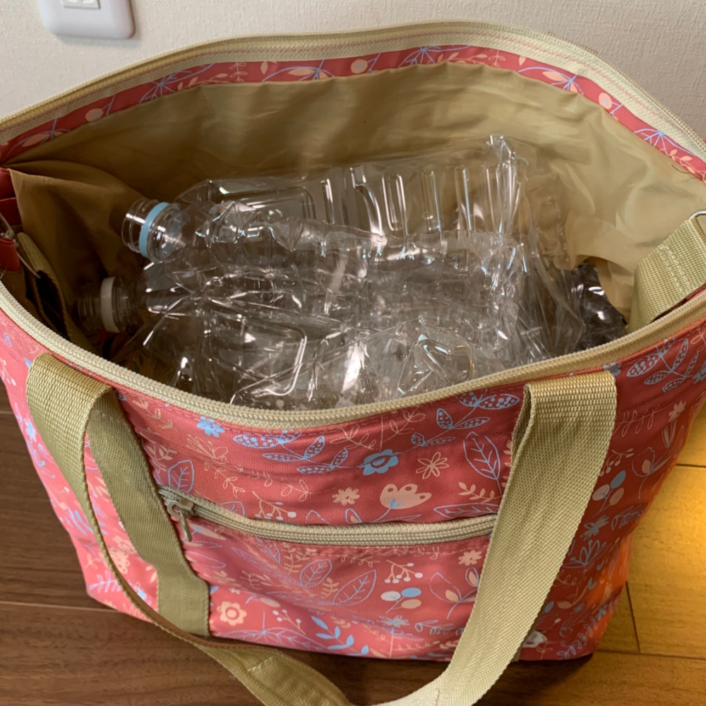 いつもマイバッグでお買い物しています。中には資源回収品として空きペットボトルを入れて店舗に持って行きます