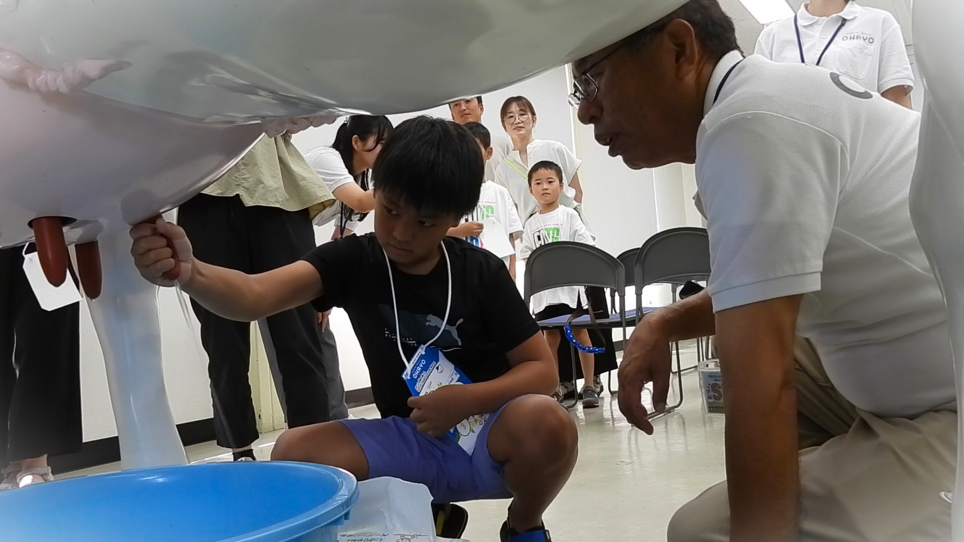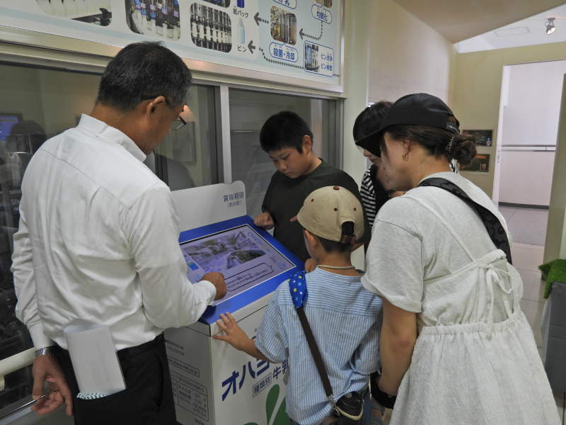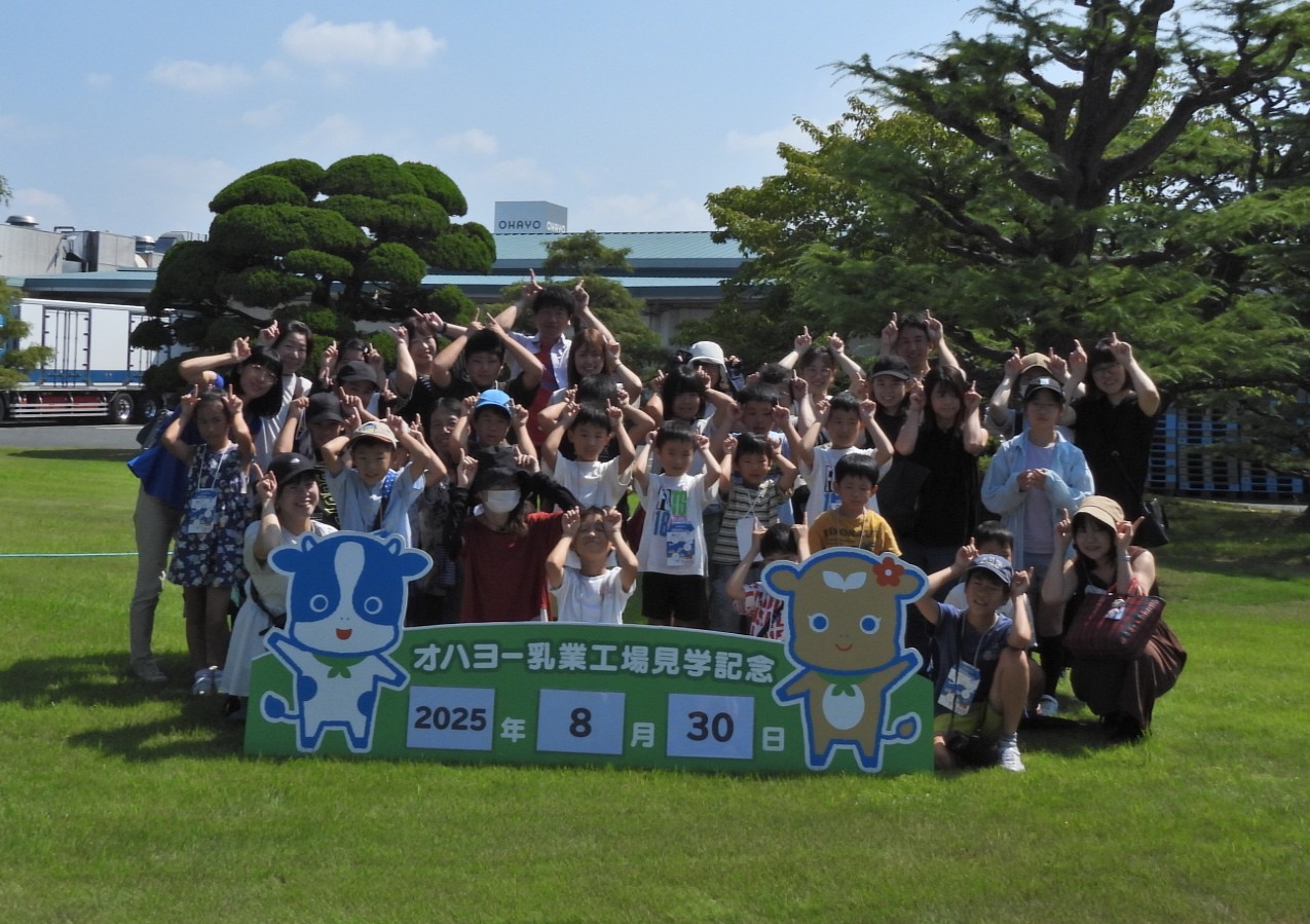 オハヨー乳業本社工場(岡山市中区)を会場として、3回の開催に合計119人(大人55名、子ども64名)が参加し、乳搾り体験、工場見学、飲み比べや陳列などを体験しました。