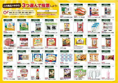 今年の予備選挙では多くの組合員のみなさん(宅配:477名、店舗:440名)に投票いただき、「Cコレ」商品の中から選ばれた宅配上位15品、店舗上位35品の商品が対象です。