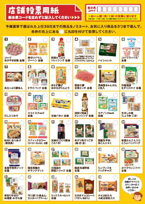チラシに書かれている商品に○をして、店舗の投票箱に投函。