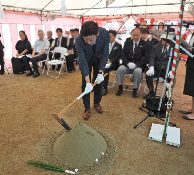 代表者による「鍬入(くわいれ)」の儀では、象徴的に初めて土を耕し、工事の安全を祈願しました。