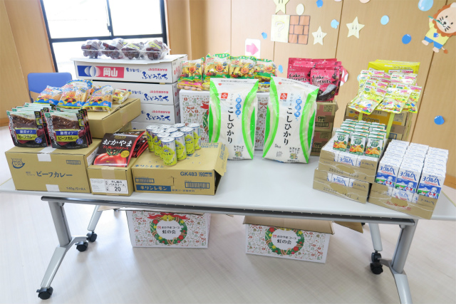 12月6日・13日・20日の日程で、虹の会会員の方々とおかやまコープの役職員・組合員が全施設を訪問し、15社(※)からの提供商品を手渡ししました。