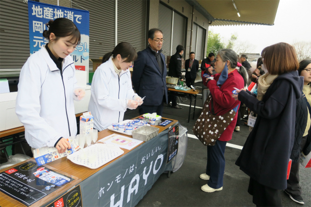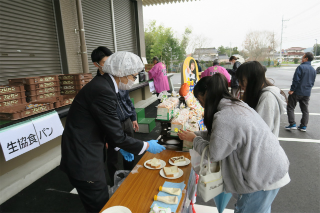 その後のお披露目会では、おかやまコープのプライベートブランド商品である「生協食パン」や「コープおかやま牛」、「生協ヨーグルト」などの試食ブースが設けられたほか、地域の皆さまや職員が施設内を自由に見学しました。