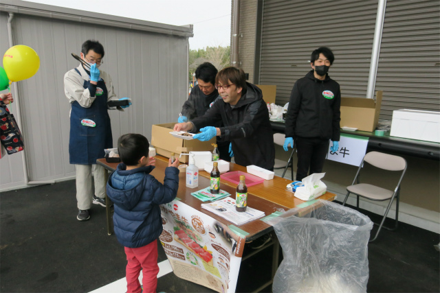 コープおかやま牛の試食ブース(農事組合法人 伍協牧場、㈱イサミ)