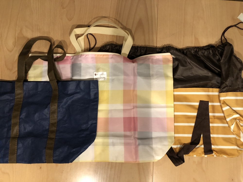 基本的に車移動なのでエコバッグを車に常備しています。スーパーのカゴにセットできる大きいものの他にも中小様々なサイズを準備しておくことでどんな時でも対応出来るようにしています。