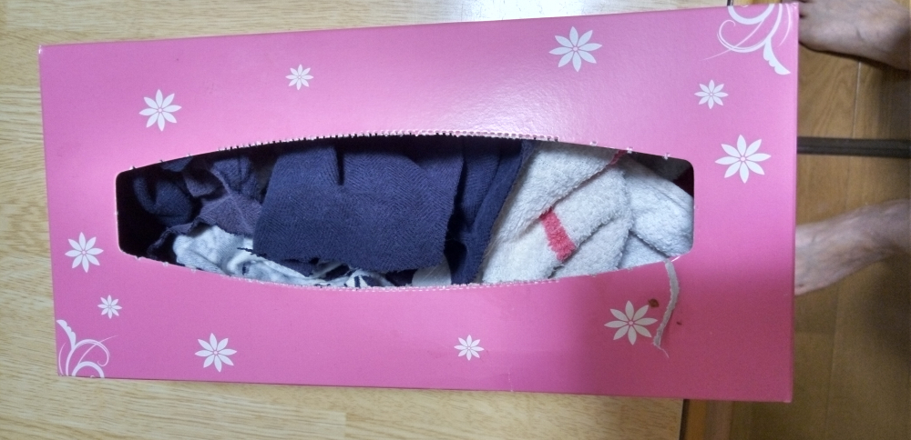 食事のあとの油などついた食器は、要らなくなった衣類やタオルなどを小さく切って、ティッシュペーパーの箱に入れてあります。そのウエスで拭き取ってから洗います。洗剤を減らし、環境に優しく排水口にも良いと思います。
