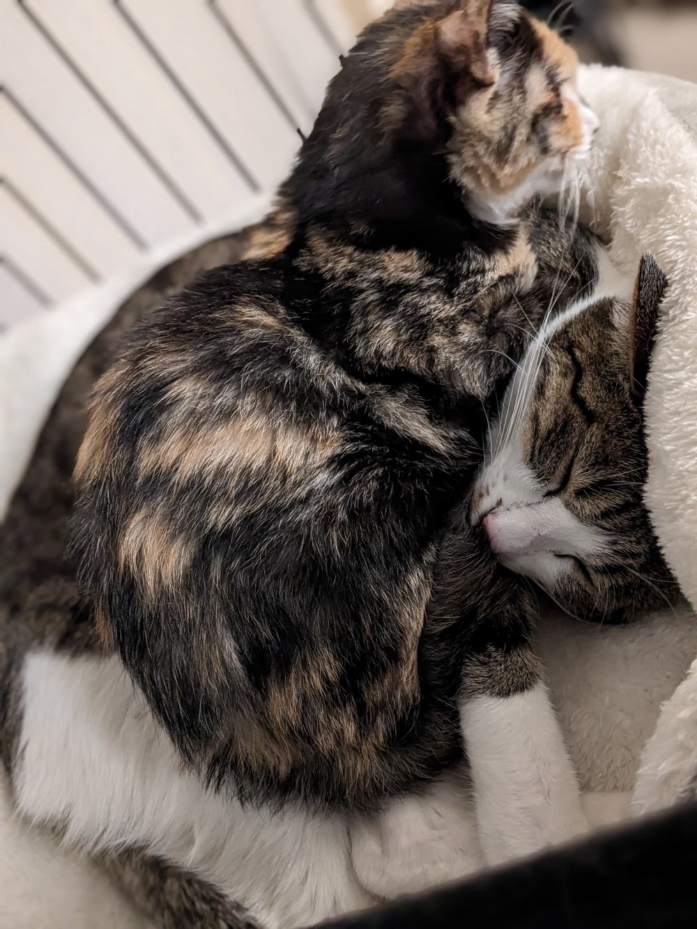 思いがけないご縁で子猫を家族にお迎えすることになりました。我が家では2匹目のニャンコ。先住猫が慣れるまで毎日ハラハラしていましたが、今は2匹でくっついて寝たり遊んだり。思いがけない癒しをもらっています。