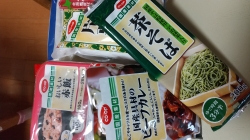 ストック品に国産素材がいろいろと。 美味しいからまたこれを選べる。 夏はこの『茶そば』がおすすめです。