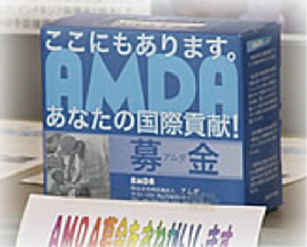 おかやまコープでは10月をAMDA募金月間と定め、宅配のOCR注文書と店舗募金箱でAMDAへの支援金を受け付けています(店舗募金箱は通年受け付け)。